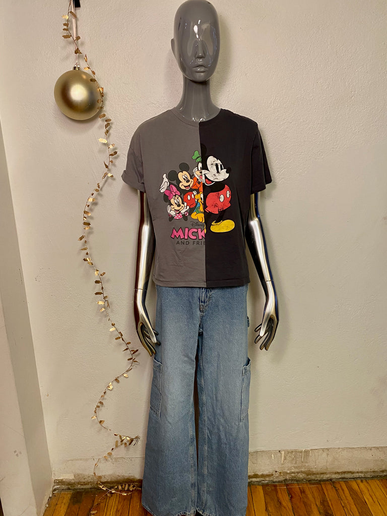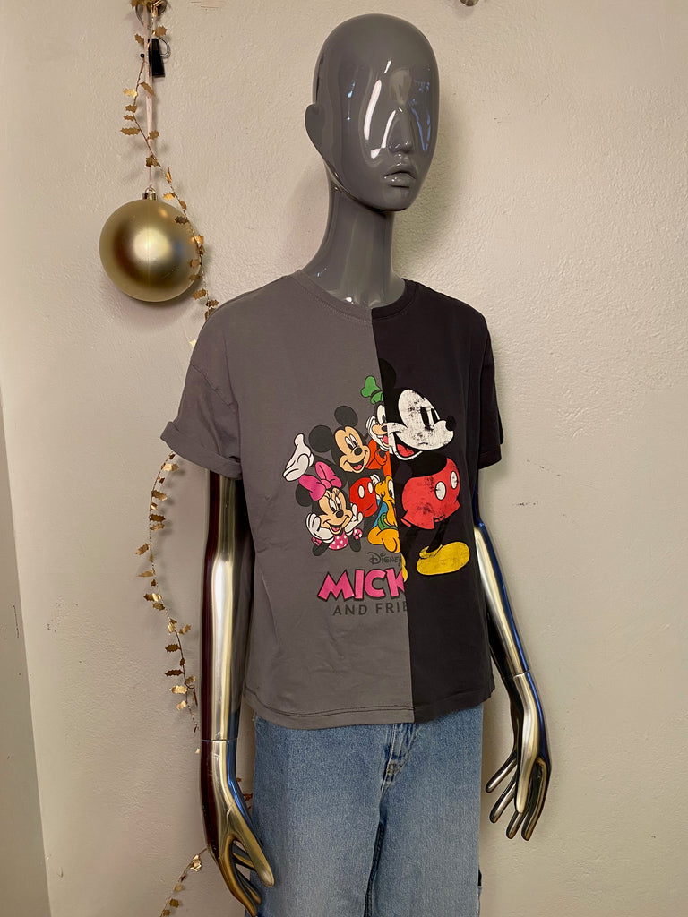Upcycled, refashioned t-shirt made from 2 Disney shirts. I call this one the Mickey Mashup!