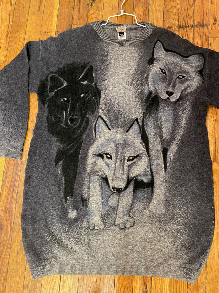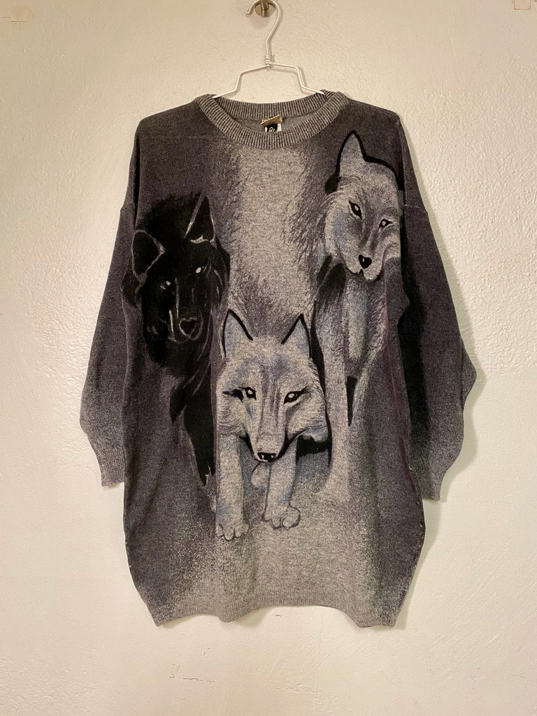Vintage Fox sweater dress / tunic from Krizia. Founded in 1954 by Mariuccia Mandelli, the company is known for introducing hot pants to popular culture in 1971 and is also known for its knitwear. A different animal was featured on their clothing every year. Krizia is still in business today, Chinese entrepreneur and designer Zhu Chongyun bought the company in 2014.