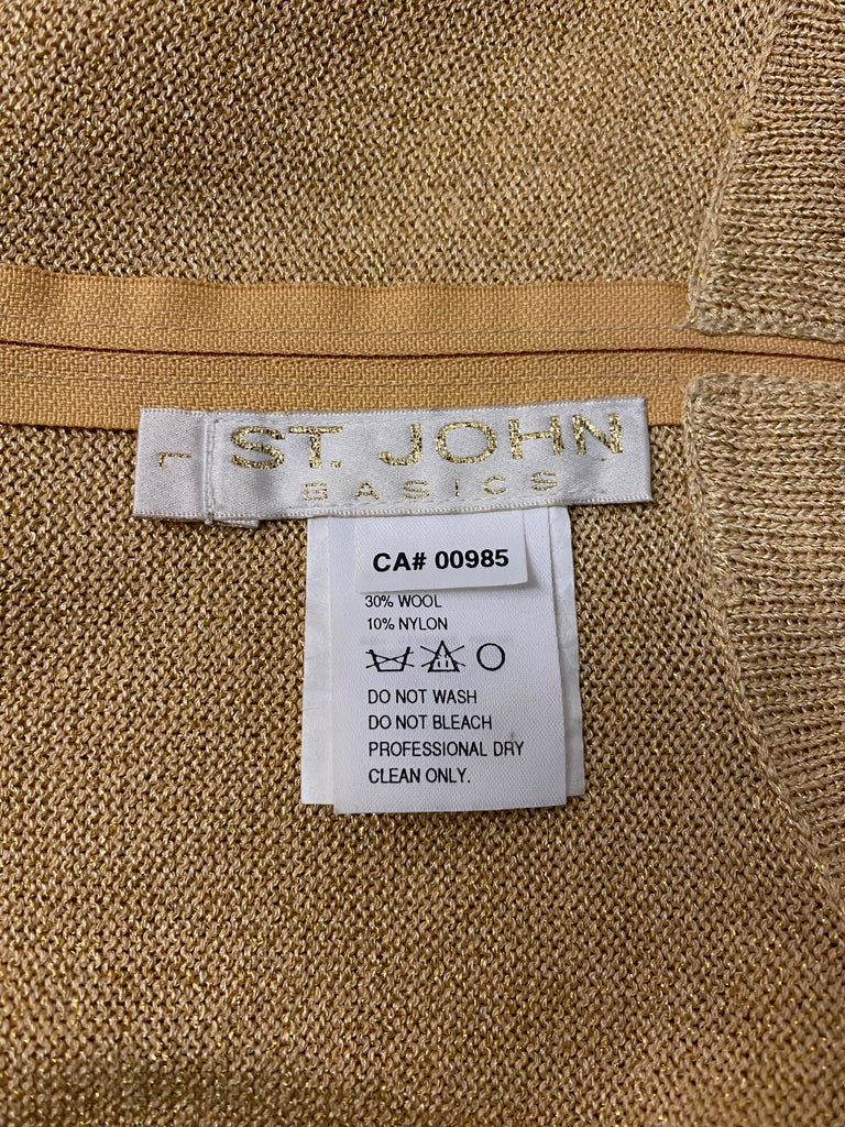 Vintage Designer St John gold sweater. St John has been known for their luxury knitwear since 1962. Founded by Robert and Marie Gray with one knit dress, the company has grown into a luxury brand.